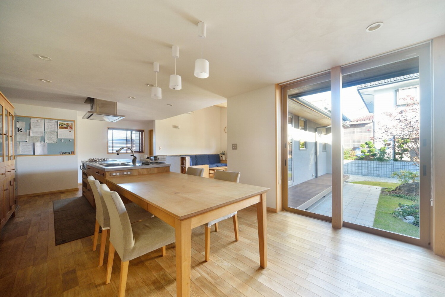 中庭を囲むL字のLDKには