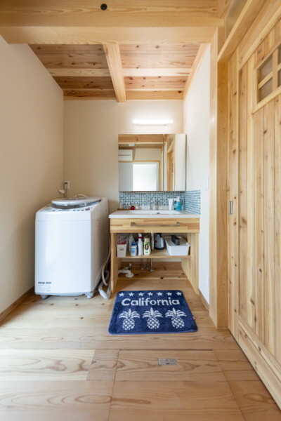 造り付けの洗面台は、お施主様の使い勝手に寄り添った世界にひとつのデザイン。あしらわれたタイルは、ご自身の手で一枚ずつ丁寧に仕上げたDIYの結晶です。日々の何気ない身支度が、愛おしい思い出と共に輝く場所となりました。