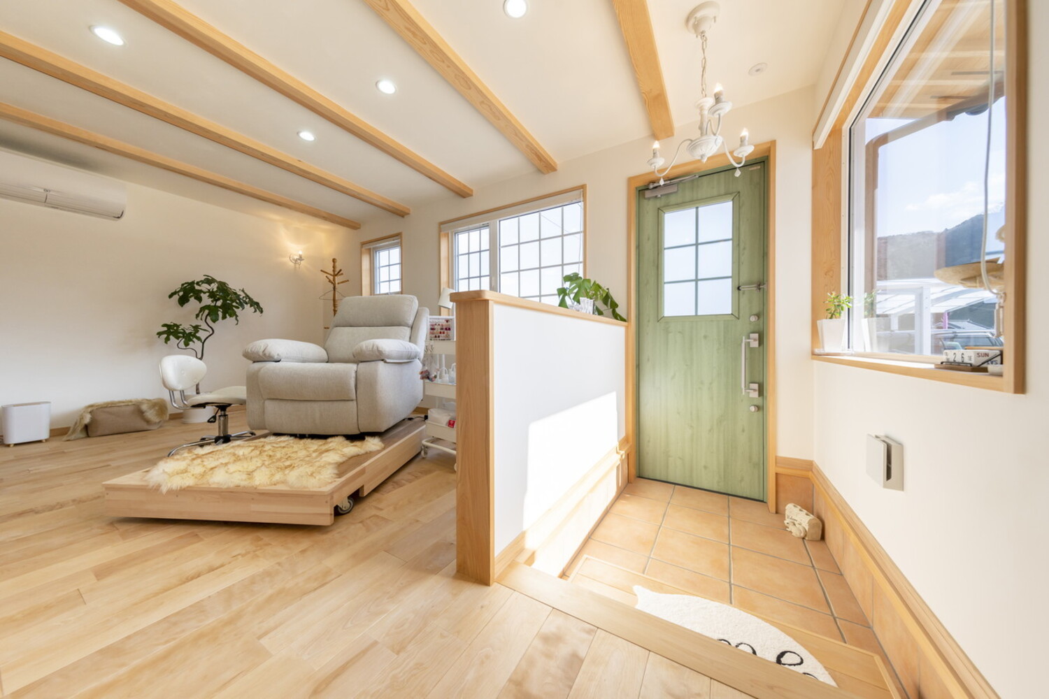 一歩足を踏み入れれば、そこは木の香りに包まれる癒しの特等席。何度も話し合いを重ねた動線と、厳選した優しい素材たちが、訪れる人を柔らかく迎え入れます。心からくつろげる、お施主様の想いが形になったサロンです。