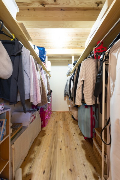 日々の暮らしを軽やかに整える、通り抜け可能なウォークスルー収納。両側のスペースを最大限に活かし、圧倒的な収納力とスムーズな家事動線を両立しました。「仕舞う」と「次の場所」が繋がる、機能美あふれる設計です。