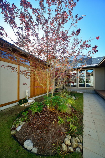 中庭を囲むL字のLDKには