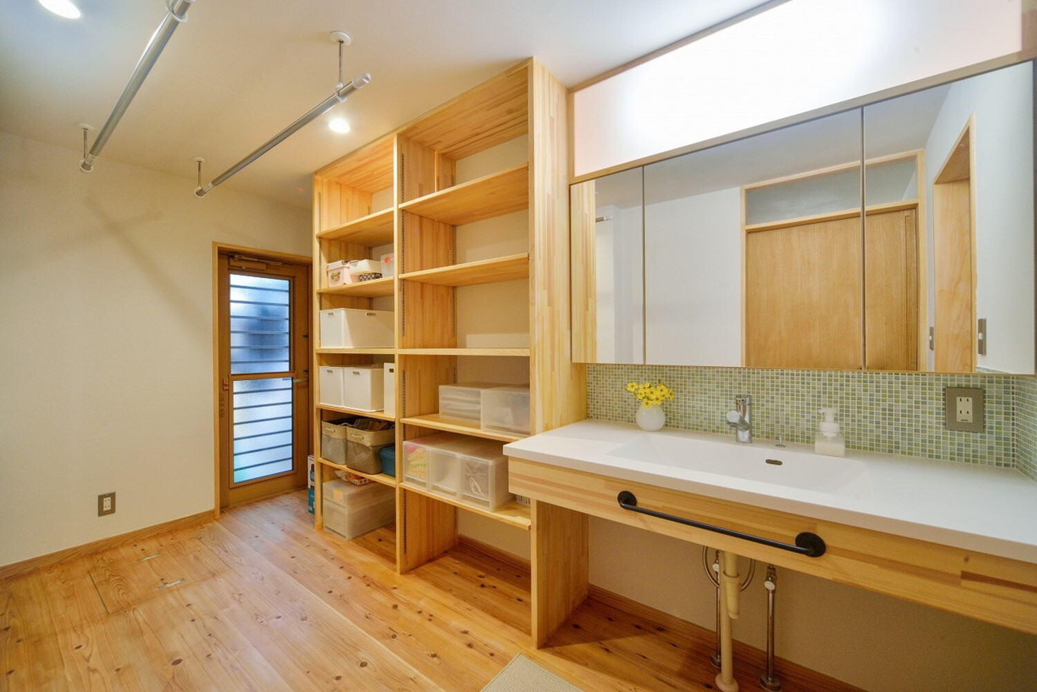 共働きの日常を支える機能的な洗面家事室や、